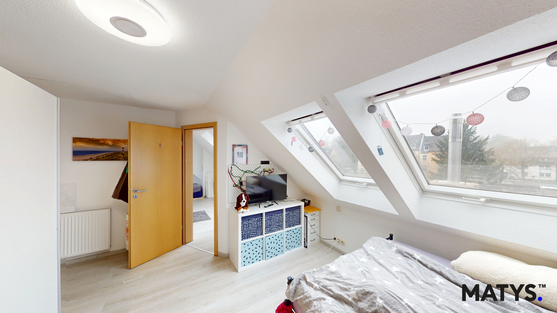 Die oberste Etage wurde bereits 2004 wohnlich ausgebaut und bietet zusätzlichen Wohnraum. Hier gibt es einen offenen Bereich, der sich ideal als Rückzugsort oder Büro eignet, ein weiteres Schlafzimmer sowie ein drittes Badezimmer mit Badewanne und Tageslicht. Über dieser Etage befindet sich noch ein praktischer Spitzboden mit ca. 10 m² Nutzfläche – perfekt für zusätzlichen Stauraum.